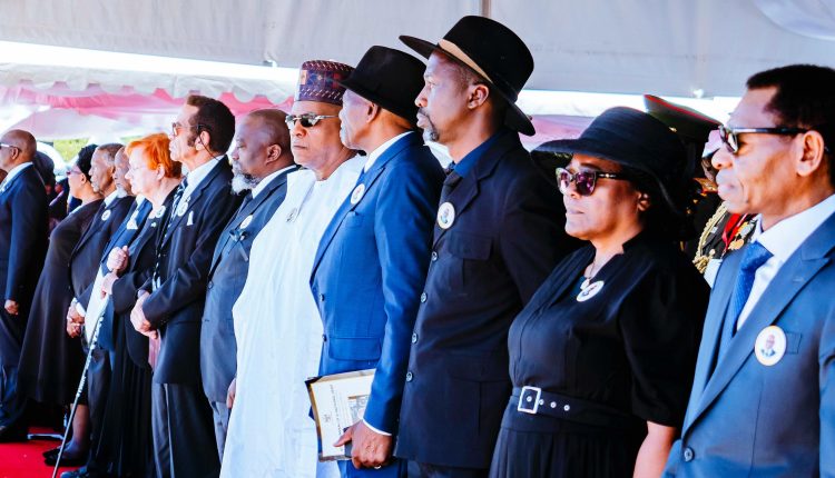 VP Shettima tare da wasu shugabannin gwamnatocin Afrika da dama, ya bi sahun shugaban Nangolo Mbumba na Namibia a jana’izar jihar inda ya yi wa Najeriya girmamawa ta karshe – a madadin shugaba Tinubu – ga marigayi Nujoma.